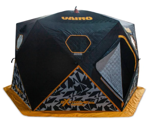 Väinö Bunker Thermal Extreme isfisketelt. De tre største modellene, XL, XXL og XXXL, er som andre telt i Väinö Bunker-kolleksjonen, Pop-up-telt, som er veldig raske og enkle å sette opp og ta ned. Teltene har PVC-vinduer som kan dekkes med klaff. SBS-glidelåser sørger for at dørene fungerer selv i kaldt vær. Teltet har luftkondisjoneringsventiler som hjelper til med å kvitte seg med fuktighet. Rammestrukturen er laget av 11,0 mm slitesterk glassfiber. Materialet er et spesielt Thermal Fabric-3 Layer, det vil si trelags 300D Oxford med PVC-belagt teltduk som ytterduk, et isolasjonslag i mellom og et fôrstoff inni. Teltet har en vannsøylevurdering på 10 000 mm. Åpne bunn- og hjørnebraketter for forankring av teltet til iskappen. En oppbevarings-/bærepose er inkludert. XL- og XXL-modeller tilgjengelig med en gjennomføring med en ikke-brennbar silikon, tett krage. Den største XXXL-modellen inkluderer 2 gjennomføringer. Teltet leveres med 7 isskruer og tau.